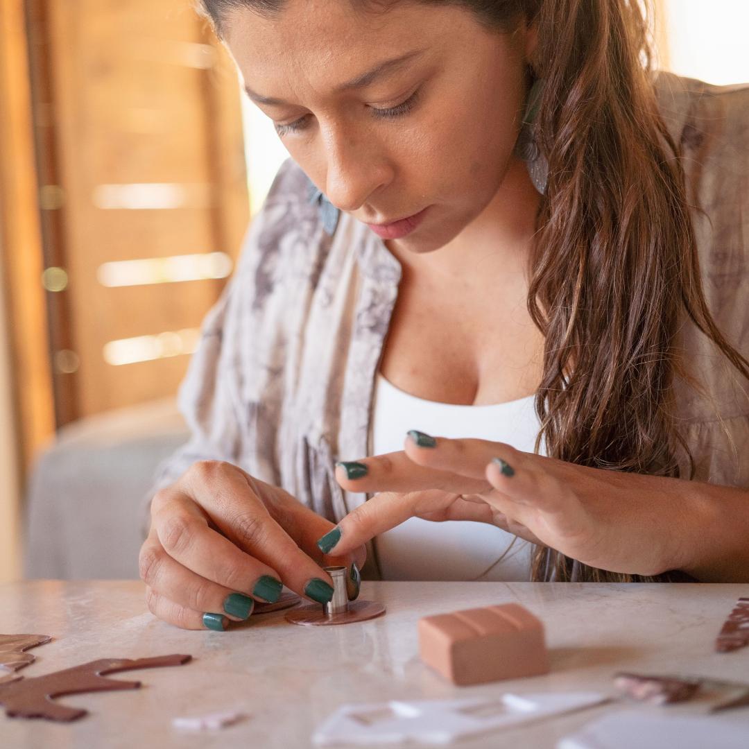 La arcilla polimérica es un material moldeable que permite una gama inmensa de posibilidades, y eso es lo que más me gusta de ella. Jugar con los colores, mezclar, crear patrones y paletas de colores para mí es terapia. Crear sin límites, sentir que cada vez puedes hacer algo distinto, me da mucho placer. Su ligereza me encanta, puedes tener un Maxi aro y sentir como si fueses con un mini...es genial.